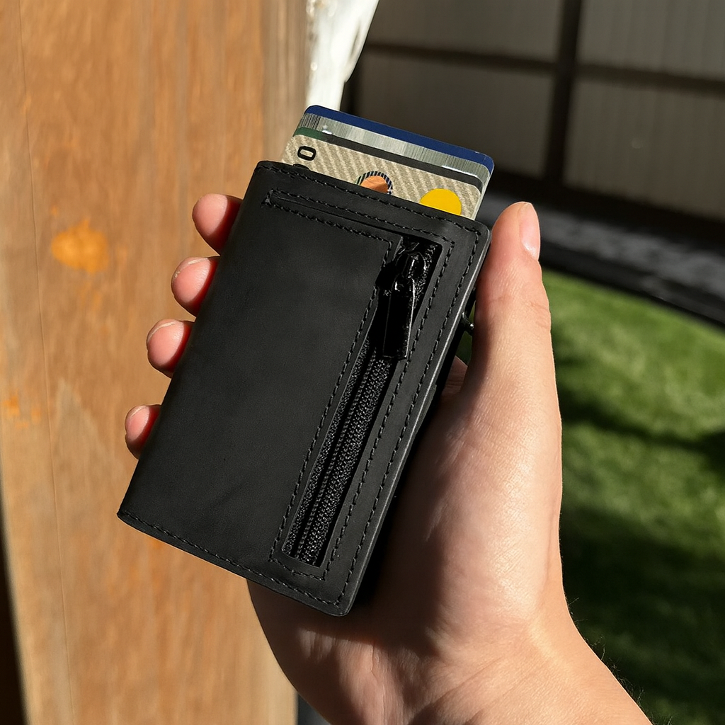 Sa conception précise et sa fermeture zippée garantissent la sécurité de vos cartes et billets, avec un confort d’usage incomparable.